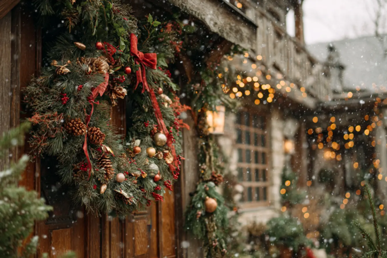 A clássica: folhagem tipo pinheiro (artificial), bolas, laços em vermelho e dourado, talvez um toque de branco. Funciona para a maioria das casas e é fácil de vender porque agrada muitos públicos.